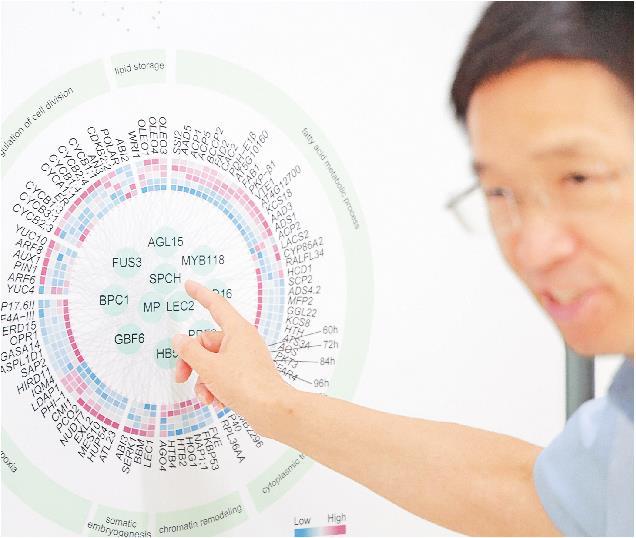图①:张宪省教授率领的科研团队以拟南芥为模型开启“植物细胞全能性”机制之谜探索,时间长达20年。