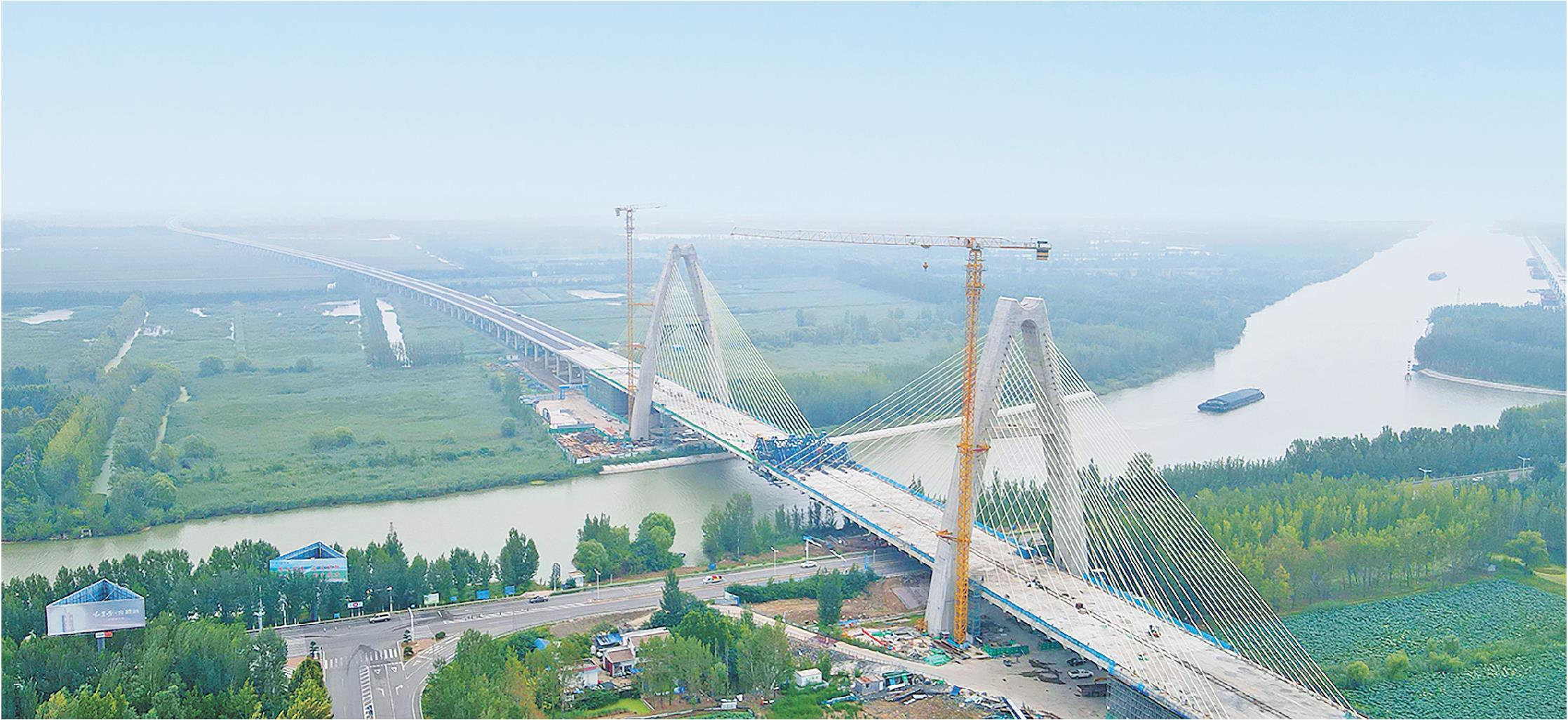 日前,济邹高速公路项目关键控制性工程京杭运河特大桥主桥顺利合龙贯通。