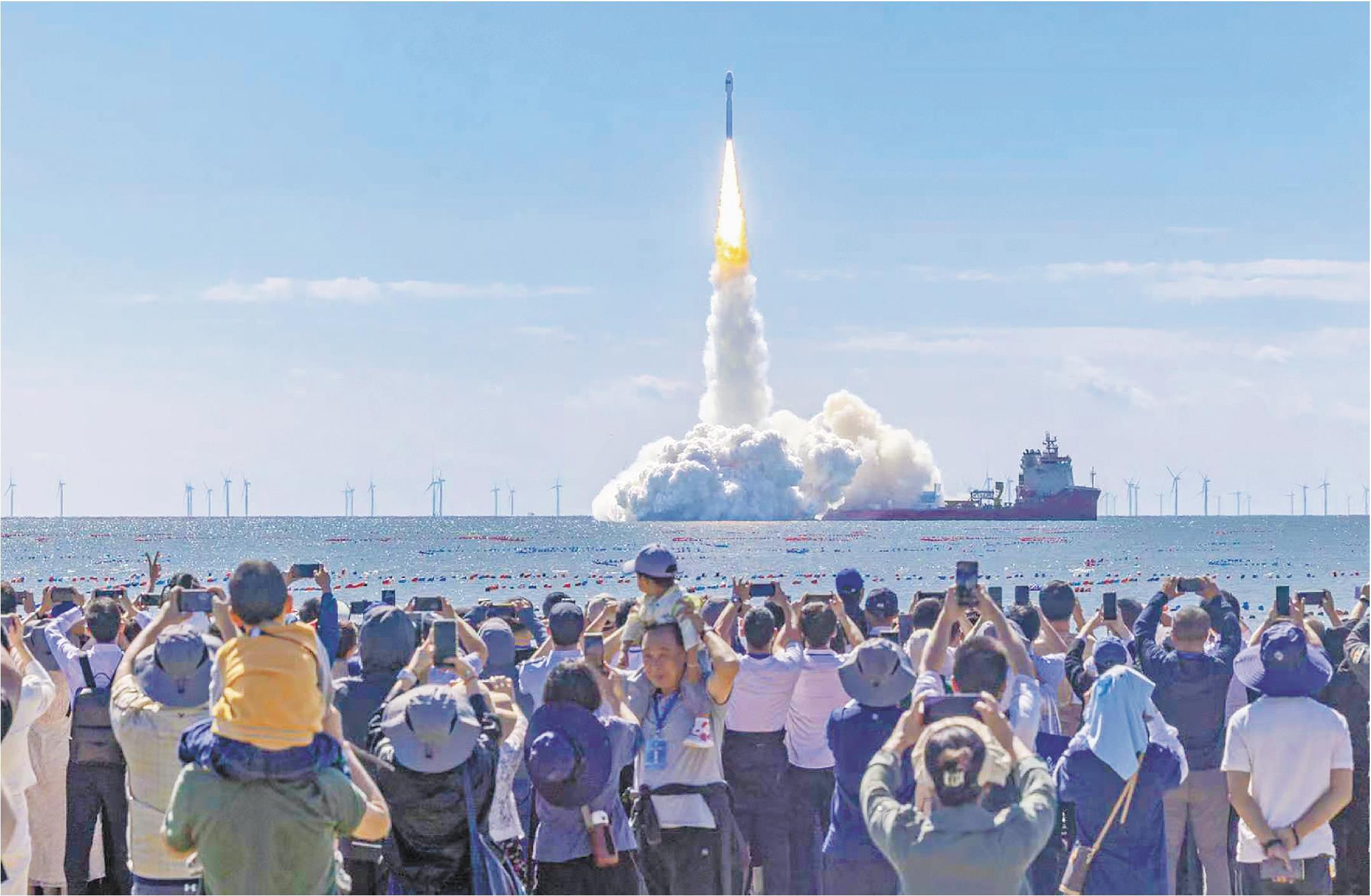 延链补链,还要向新兴产业、未来产业发力。9月9日凌晨,夜色中的山东近海海域,捷龙三号遥七运载火箭将吉利星座05组11颗卫星送入太空。作为我国首个商业航天海上发射母港,东方航天港现已成功保障我国4型固体火箭18次海上发射任务,累计将115颗卫星送入预定轨道,已具备年总装总测50发火箭的产能。从2019年首次海上航天发射至今,短短几年间,东方航天港的快速崛起,在海阳实现了航空航天产业的“无中生有”。