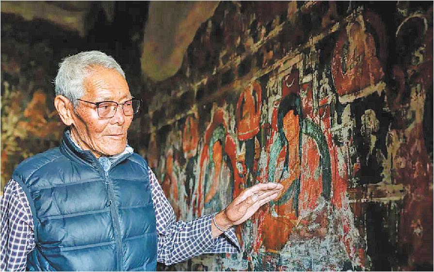 日复一日,他在上午十点出发,沿四百多级陡峭石阶缓缓而上。打扫洞窟、检查壁画是否渗水或坍塌、讲解石窟及壁画历史、提醒游客保护文物,最后细心关好每一扇窟门。忙碌间隙,他常坐在窟前喝酥油茶、嚼糌粑,与古老石窟共享寂静时光。他或许从未读过深奥的考古专著,却用最朴素的方式诠释了何谓文明守护者。