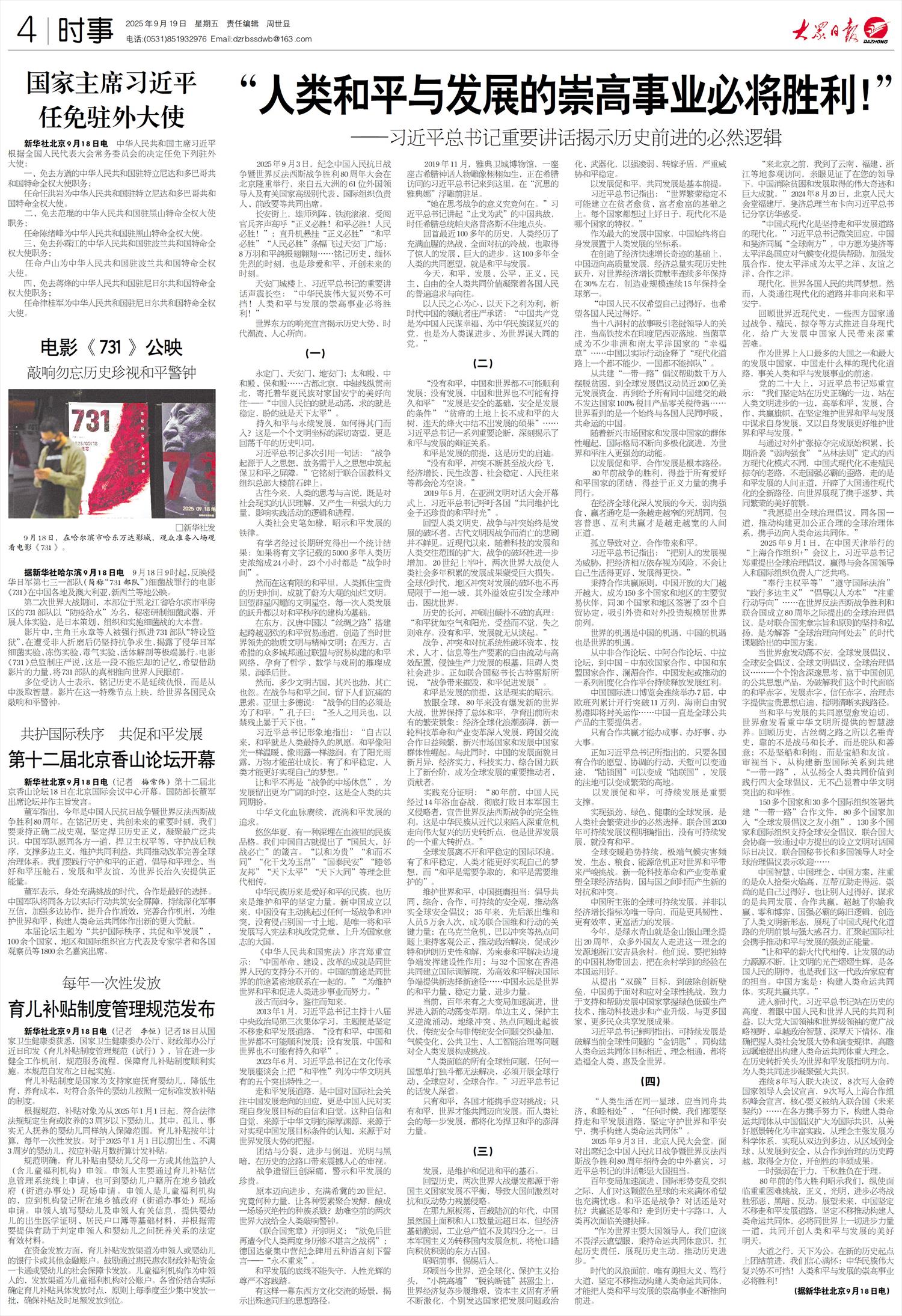 “人类和平与发展的崇高事业必将胜利!”