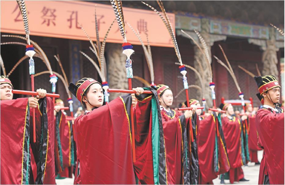 9月26日上午,2025中国国际孔子文化节乙巳年公祭孔子大典在曲阜孔庙进行首次带妆彩排。