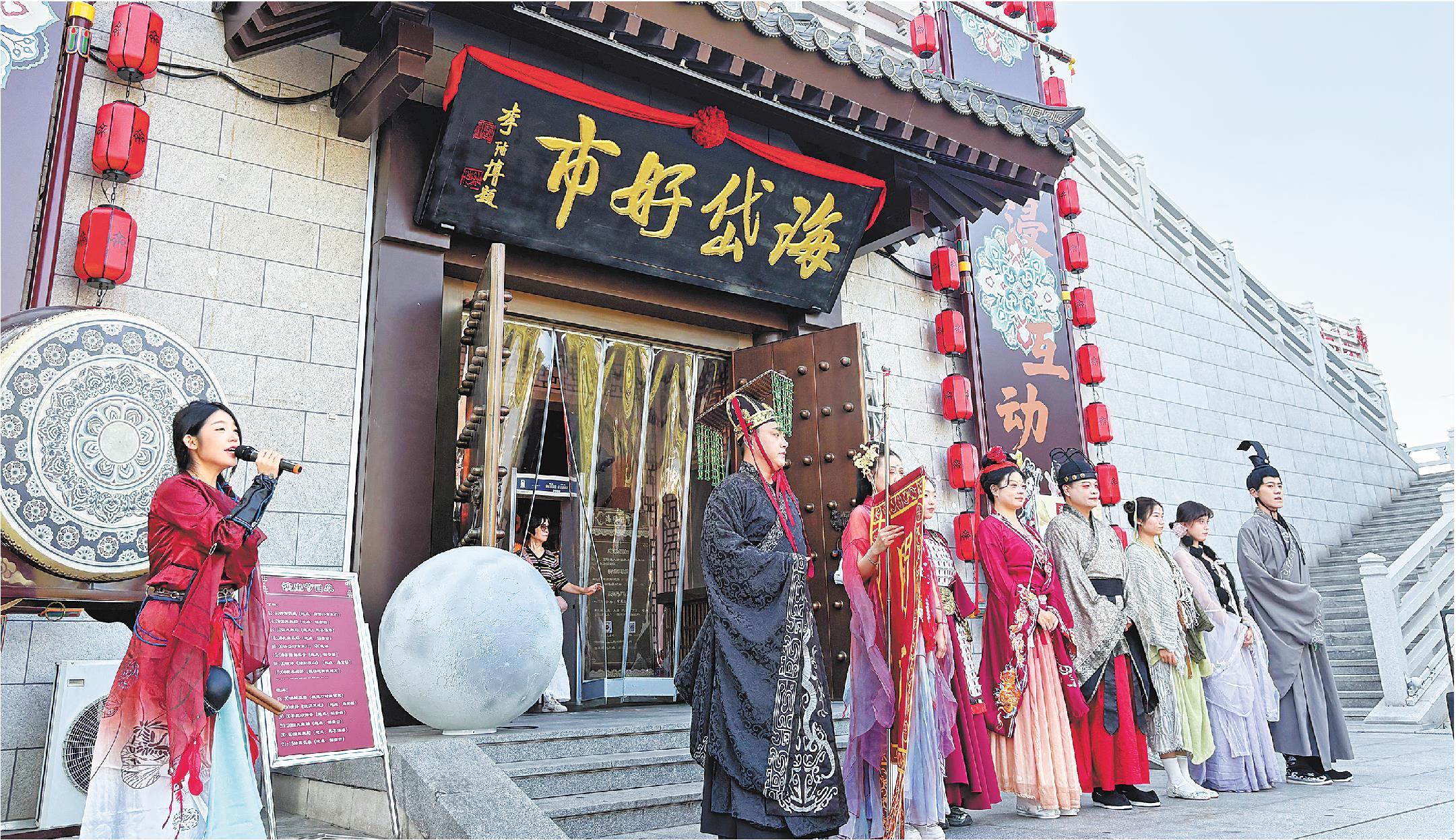 9月27日,为迎接国庆、中秋假期即将到来的大客流,位于淄博市张店区的海岱楼特色演绎“海岱好市”组织全体NPC集中排演,更新节日期间节目单,以丰富多元的沉浸式体验,让市民游客“一步进入齐国盛景”,轻松实现“一秒入齐”。