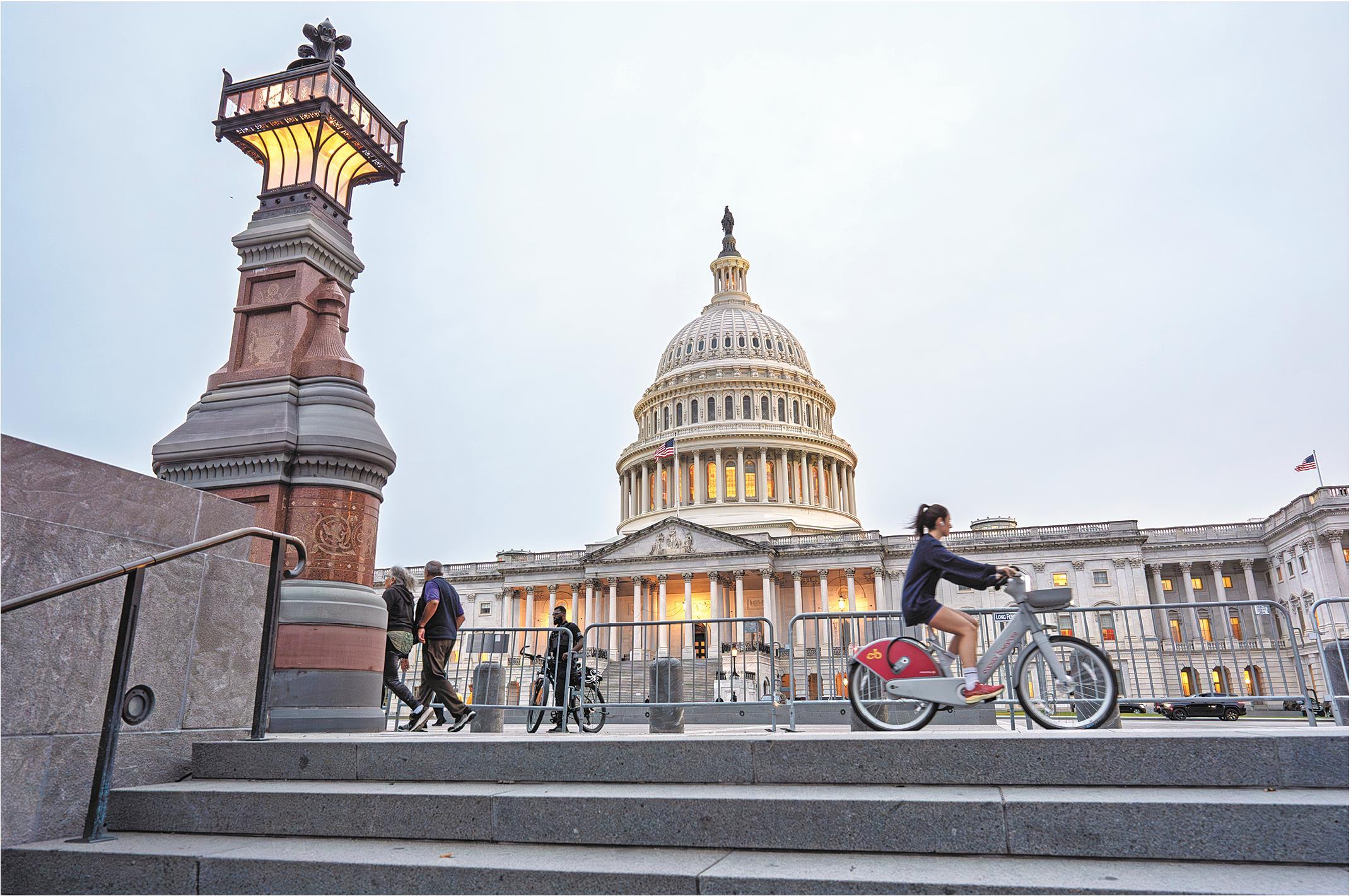 9月30日,在美国首都华盛顿,行人经过美国国会大厦。(□新华社发)