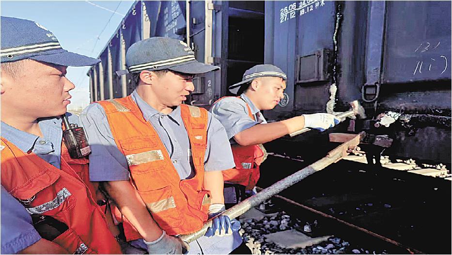 近日,中铁十五局集团轨道交通运营公司黄大分处坚守一线,紧盯车辆倾向性故障,有序开展车辆车体故障整治工作,进一步加大安全工作力度,全力确保铁路车辆安全平稳运行。图为列检专业人员对线上运行的C64K型车辆下侧门搭扣进行整治修复工作,防止因下侧门搭扣功能不良造成车辆在运行过程中抛撒货物,影响运输安全。