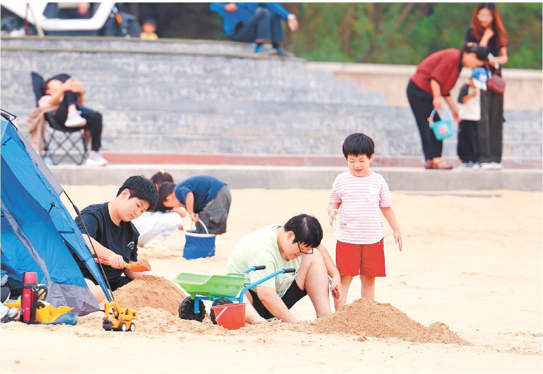 国庆假期,游客体验惬意海滨游。(□记者 王培珂 报道)