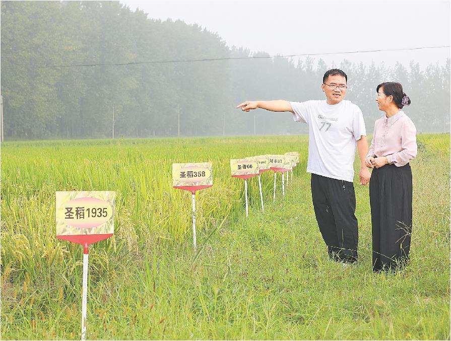 金秋时节,枣庄市台儿庄区邳庄镇50亩粳稻试验田迎来灌浆后期,连片稻田褪去翠绿、渐染金黄,粳稻在田间舒展身姿。粳稻长势齐整,不同品种的稻穗形态、色泽略有差异。目前10个品种均无倒伏、病虫害迹象,灌浆速率稳定,预计籽粒饱满度和千粒重都能达到预期。