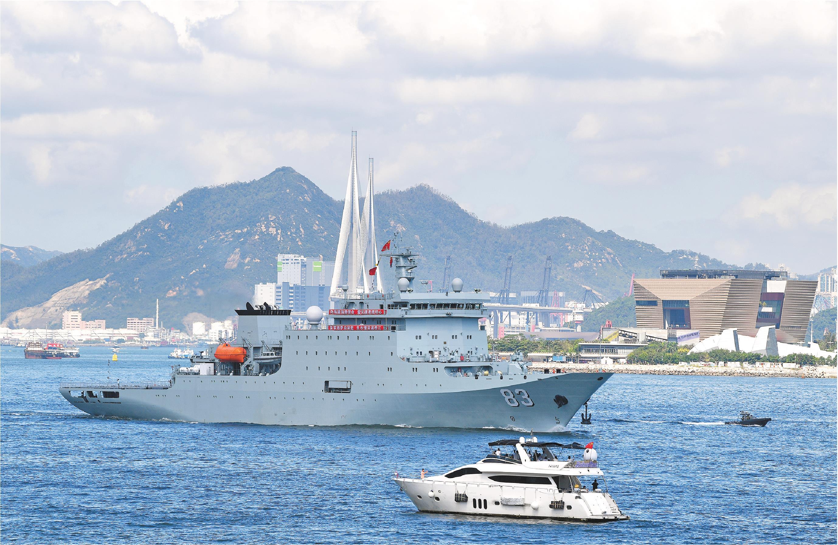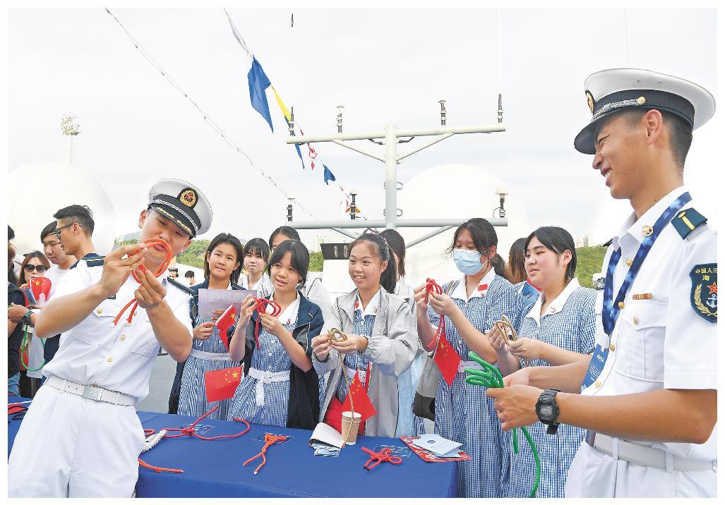 83舰编队9月30日抵达香港后,于当日起至10月2日组织舰艇开放活动。驻香港部队邀请青少年学生等群体登舰参观,还发放1.1万张门票供市民预约参观。本次活动得到市民热烈响应,预约票开放即告罄。停靠香港期间,编队举行了升旗仪式、舰艇开放活动,吸引了2万余名港澳民众参与。活动现场,歌曲快闪表演、海军旗语展示、船艺绳结体验等具有海军特色的项目提升了民众与海军官兵互动的积极性,让“海军热”席卷香港,让“中国红”扮靓维港,激发广大市民的爱国爱港之情。
