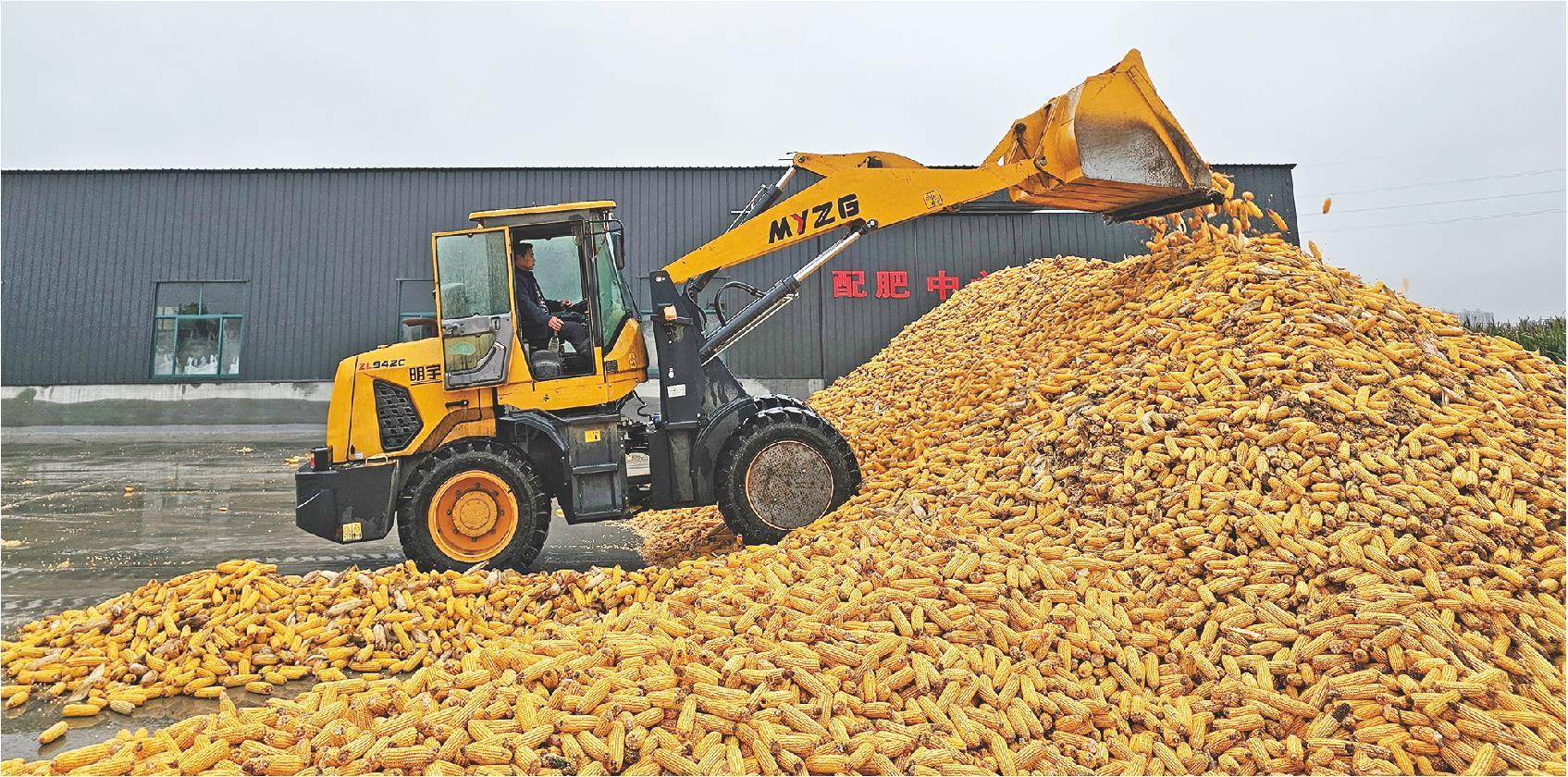 10月9日,平原土地鲁望农业发展有限公司正在收储玉米。(□曾轲 修从涛 报道)