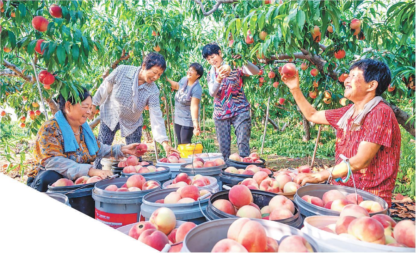 眼下,肥城10万亩桃园迎来丰收,果农们正抢抓晴好天气加紧采摘。