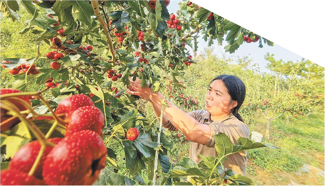 新泰上万亩甜山楂进入采摘季。在新泰市刘杜镇,种植户正忙着采摘山楂。