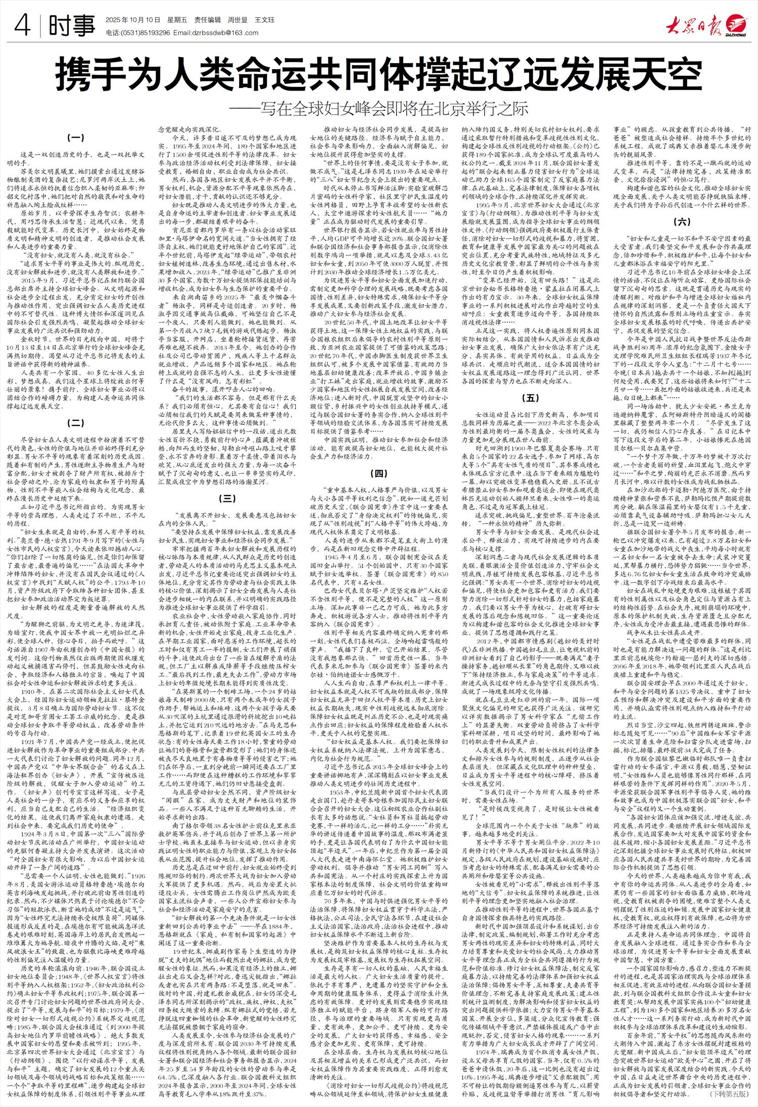 携手为人类命运共同体撑起辽远发展天空
