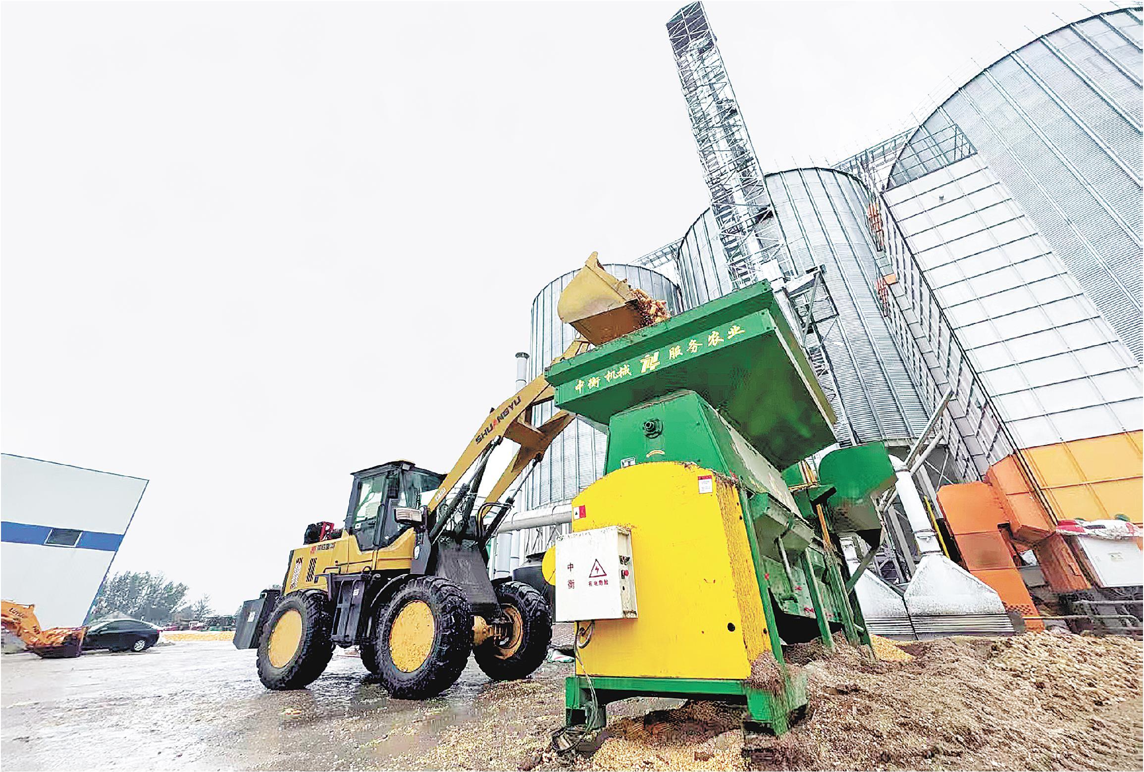 10月7日,山东冀鲁边乡村振兴投资运营有限公司内,一台玉米脱粒机正在作业。(□通讯员 苏安矗 记者 徐付彪 报道)