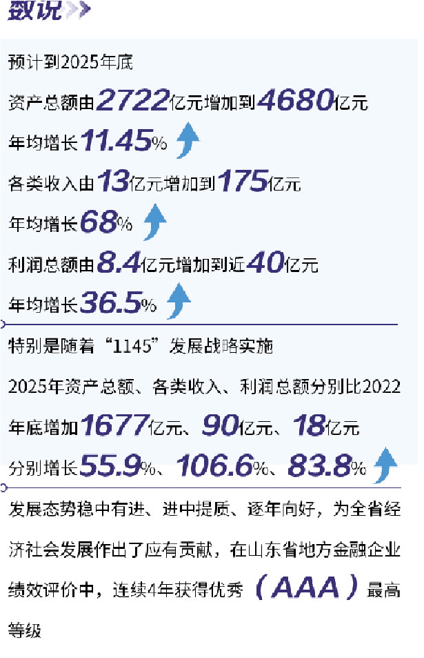 未来,山东财金将继续锚定“1145”发展战略,持续提高金融资源配置力、产业示范引领力、投资赋能带动力,奋力打造模式领新的财政金融政策联动平台、国内一流的国有资本投资运营公司,为中国式现代化山东实践和国企篇章贡献新的更大力量!