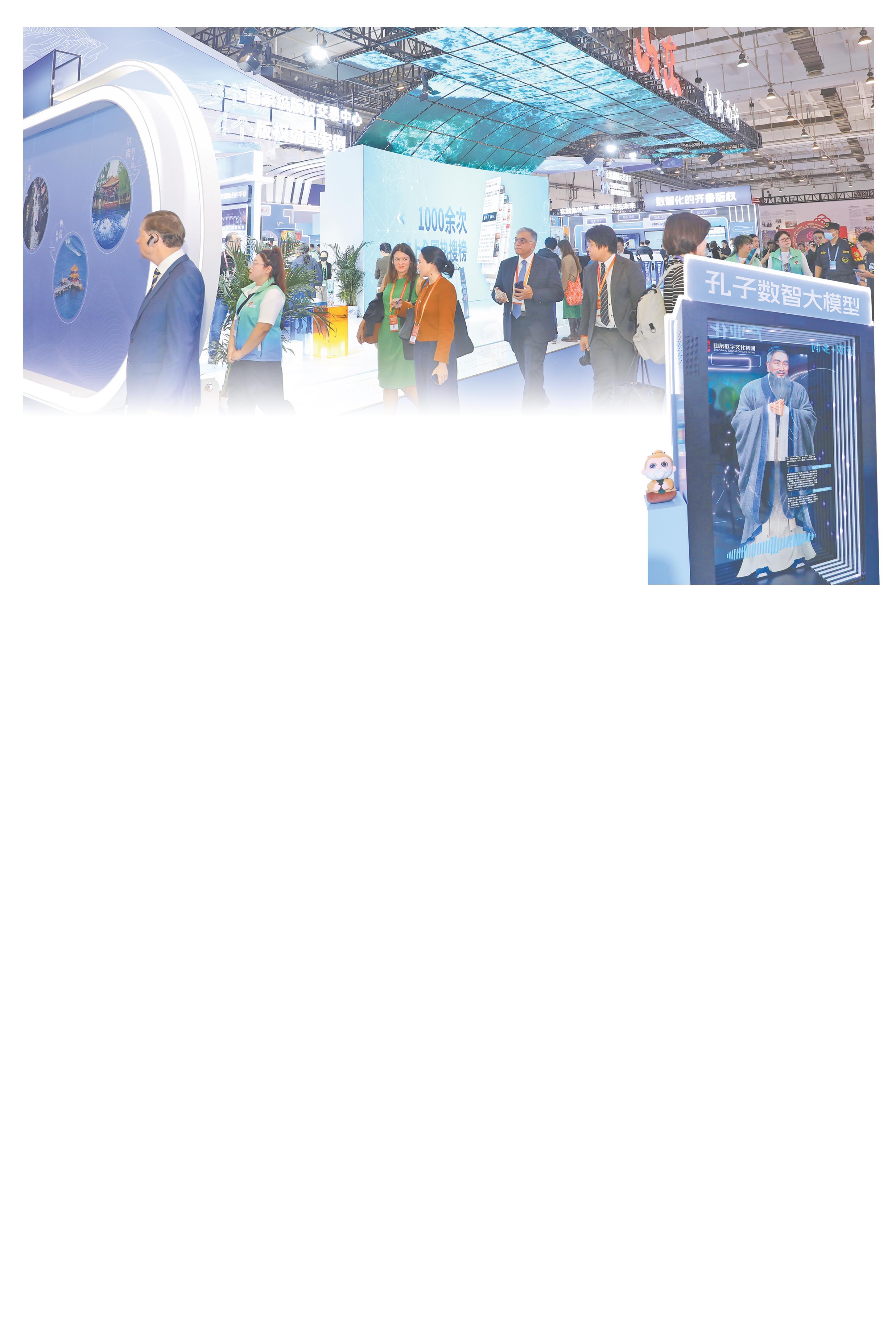 大图:10月16日,第十届中国国际版权博览会山东展区迎来参观者。小图:“孔子数智大模型”亮相。(□记者 薄克国 赵琳 报道)