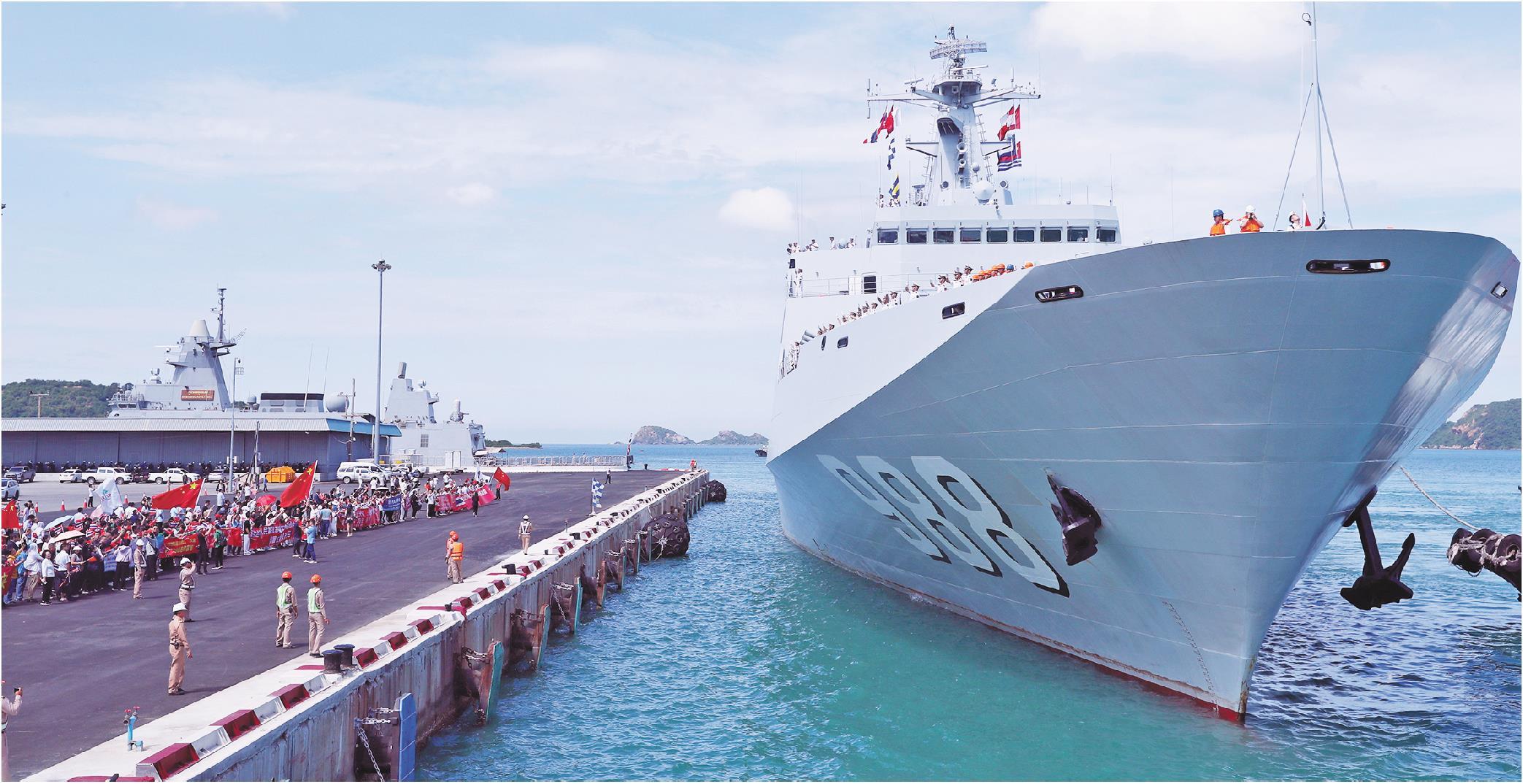 当日上午,中国海军83舰编队抵达泰国梭桃邑港,开始对泰国进行为期4天的友好访问。