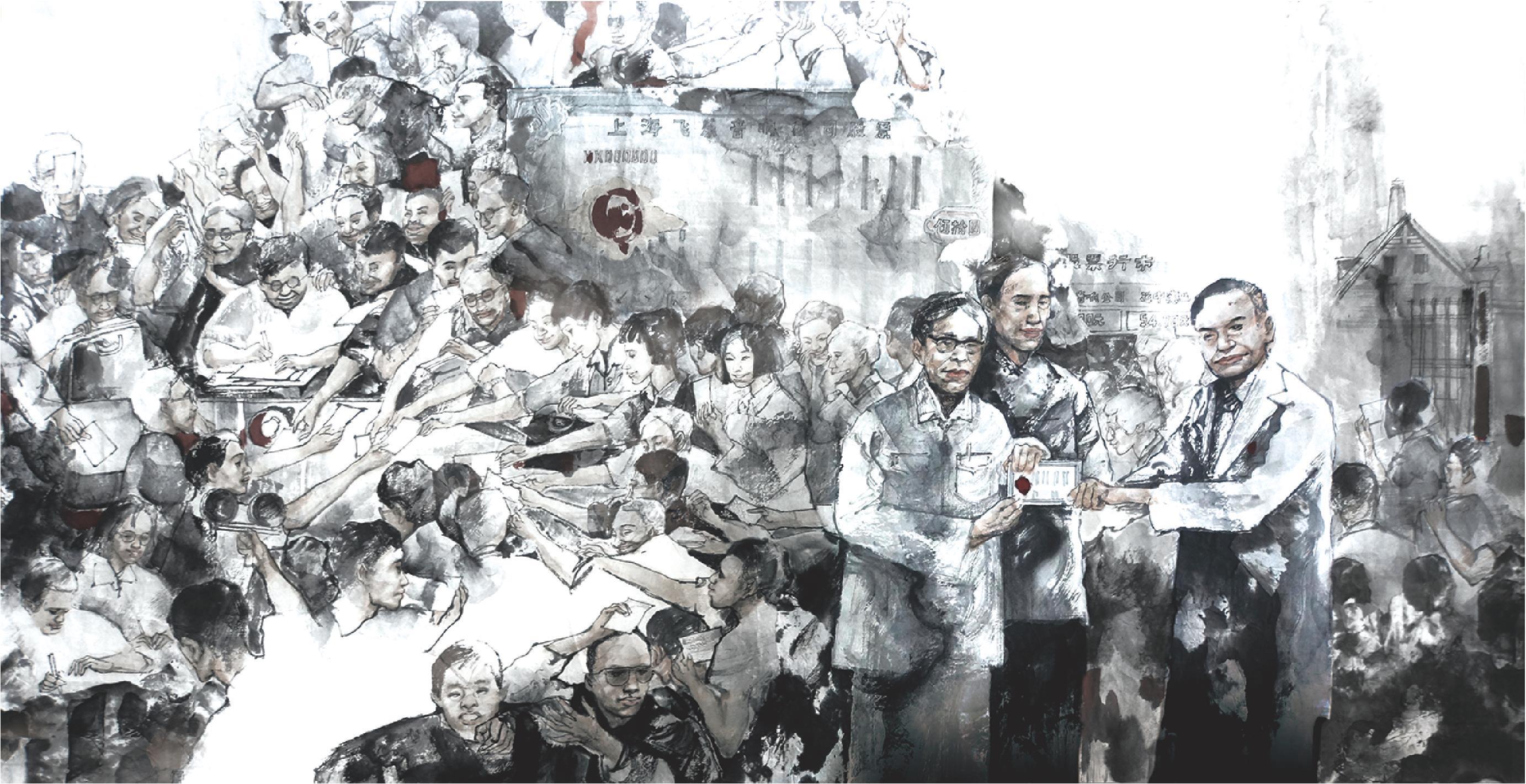 《中国第一只股票的诞生》 色稿6 50cm×100cm 2019年 杨晓刚