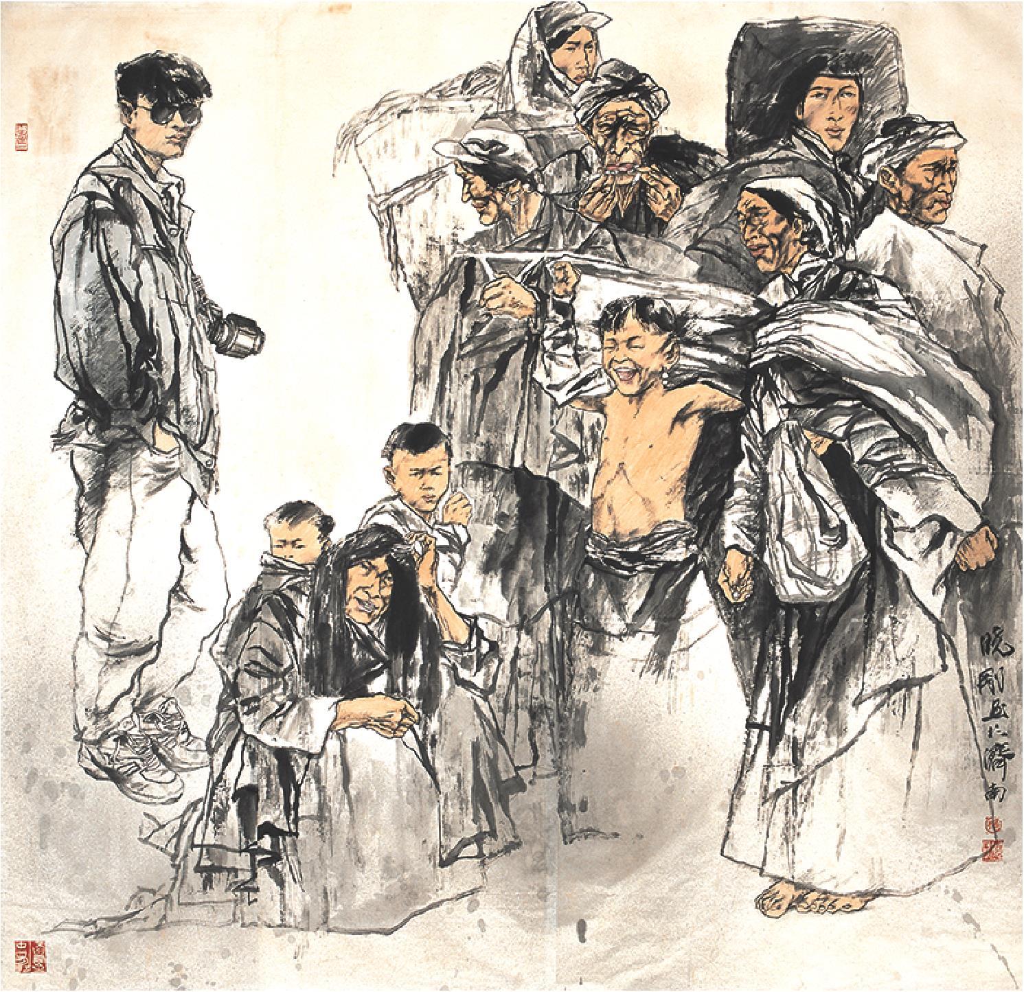他的作品有着对人民大众、知识阶层的观察和体悟。他的艺术创作着眼于现实,落笔于当下,有着历史文化的深度,更有着对于现实生活、对于民生、对于社会的一种关照。他注重写生,行走民间,在洞察民间百态中获得灵感,通过笔墨的变化,以中国水墨的笔法来展现民族风情,记录国家社会发展的现状。