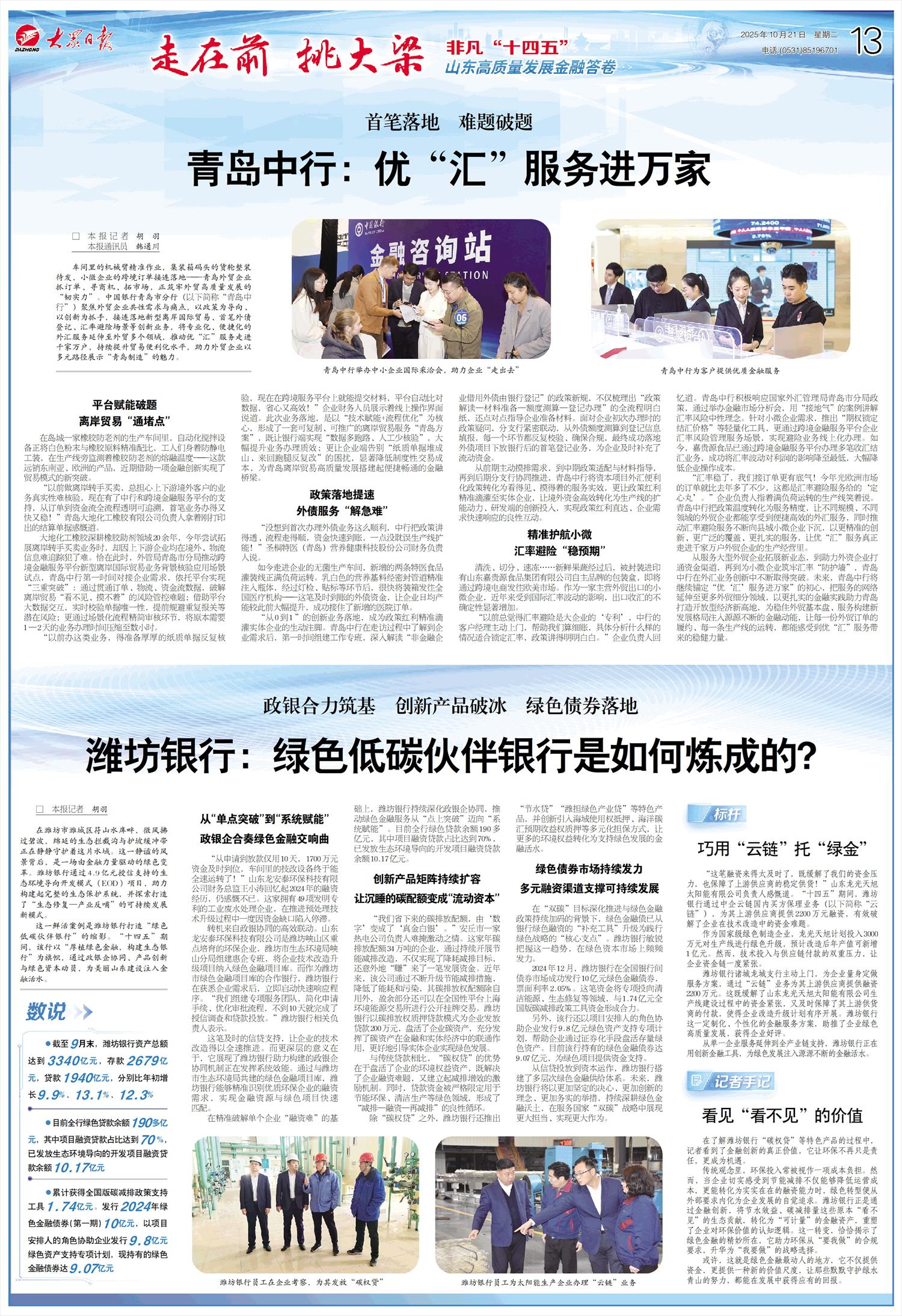 -大众日报-13-走在前 挑大梁 非凡“十四五”山东高质量发展金融答卷
