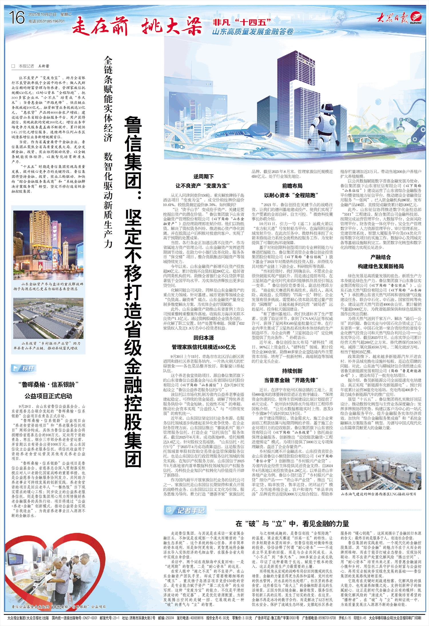 -大众日报-16-走在前 挑大梁 非凡“十四五”山东高质量发展金融答卷
