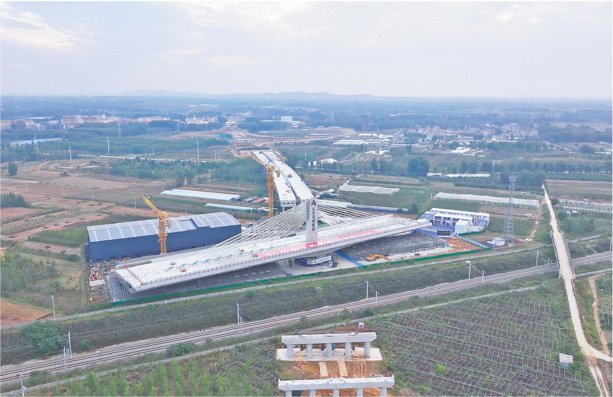 本报沂水10月21日讯 今天,由山东高速集团投资建设、中铁十四局承建的董梁高速公路沈海至新泰段关键控制性工程——上跨瓦日铁路立交桥顺利完成转体施工。20日,由山东高速集团投资建设,中铁十局承建的济南至微山公路济南至济宁新机场高速段项目重要控制性工程上跨瓦日铁路转体桥历时60分钟顺利完成转体作业,实现精准对接。