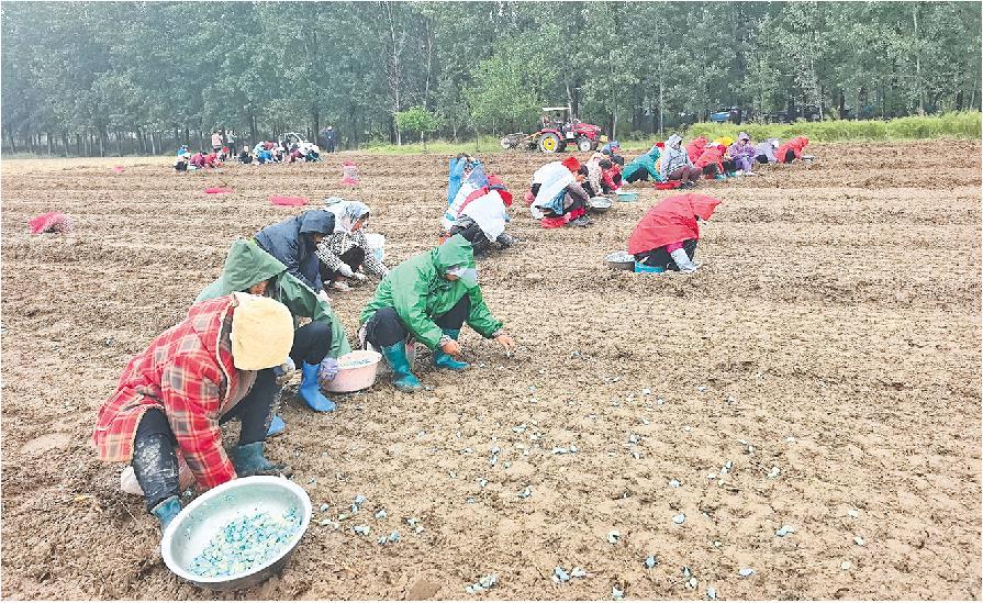 10月10日,鄄城县阎什镇李庄村的田间地头一片忙碌。农户们正采用“机械打窝+人工播种”的方式抢种40亩大蒜,机械在田间开沟打窝,农户们冒雨将蒜种精准播入窝中,在秋雨与泥土的交织里,为来年的丰收播下希望。