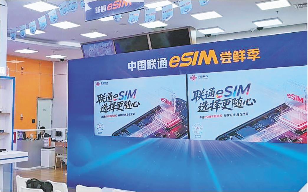 中国联通北京西单营业厅内的eSIM业务展示。