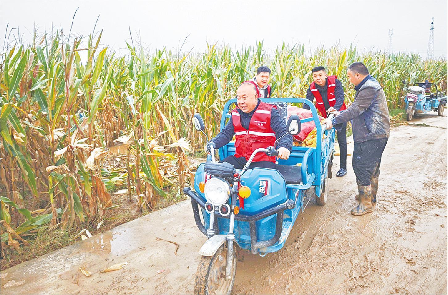 近日,人保财险东明支公司工作人员在东明县武胜桥镇协助农户开展抢收。