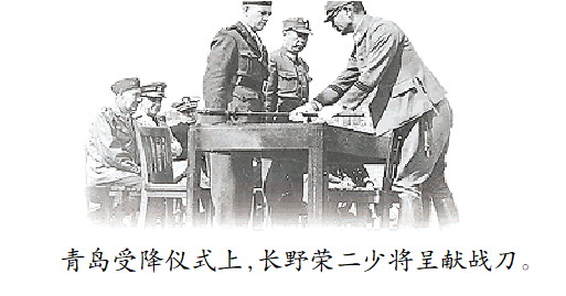 青岛受降仪式上,长野荣二少将呈献战刀。
