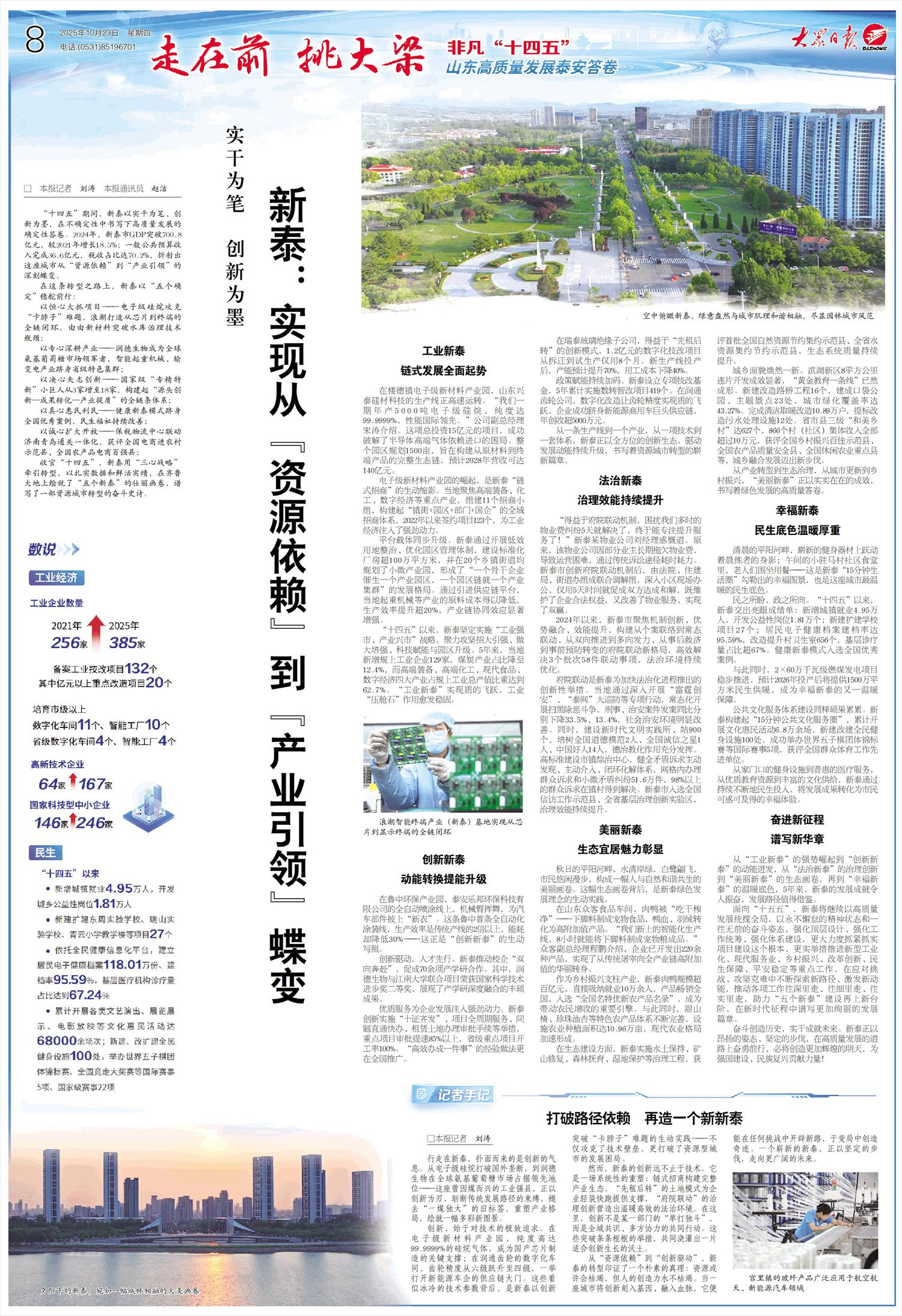 -大众日报-08-走在前 挑大梁 非凡“十四五”山东高质量发展泰安答卷