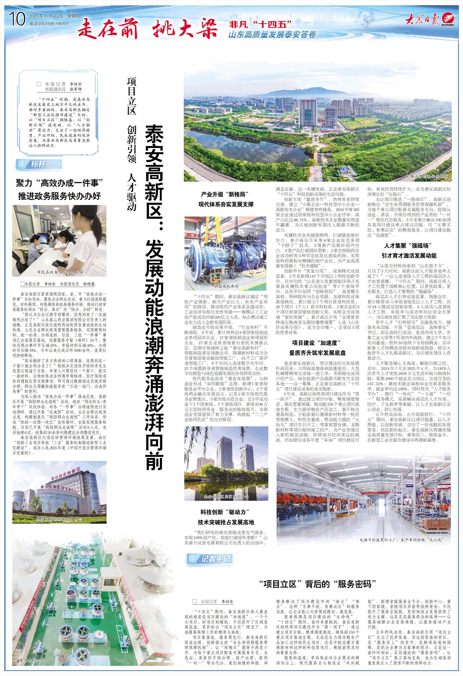 -大众日报-10-走在前 挑大梁 非凡“十四五”山东高质量发展泰安答卷