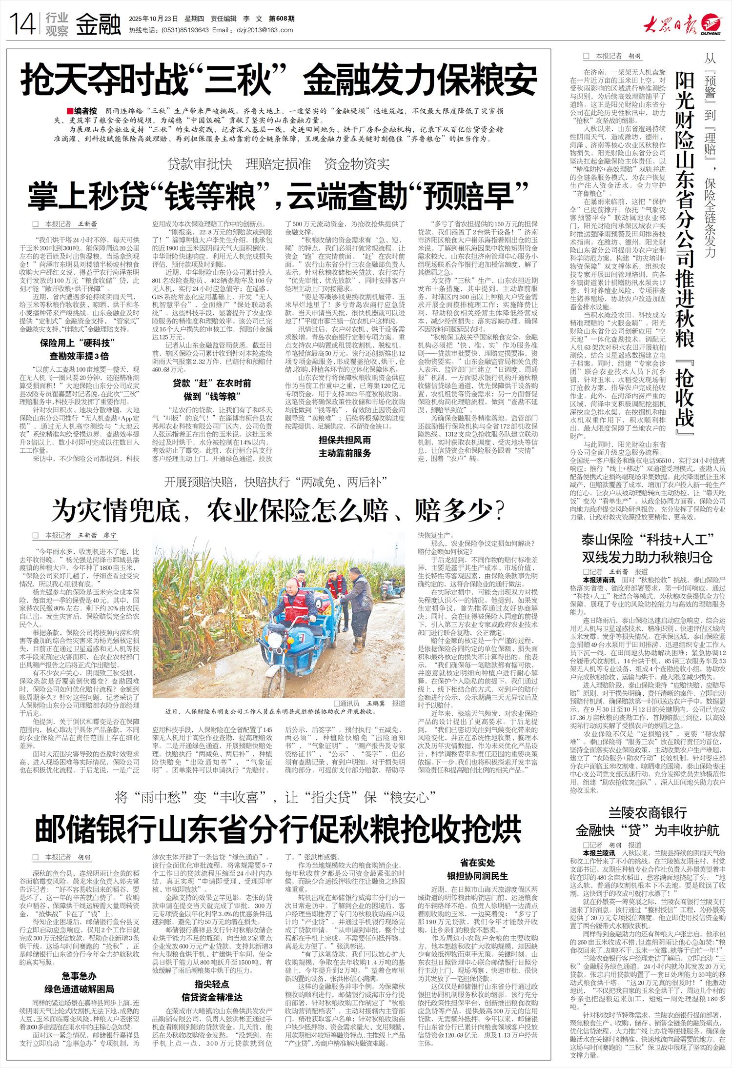 泰山保险“科技+人工”双线发力助力秋粮归仓