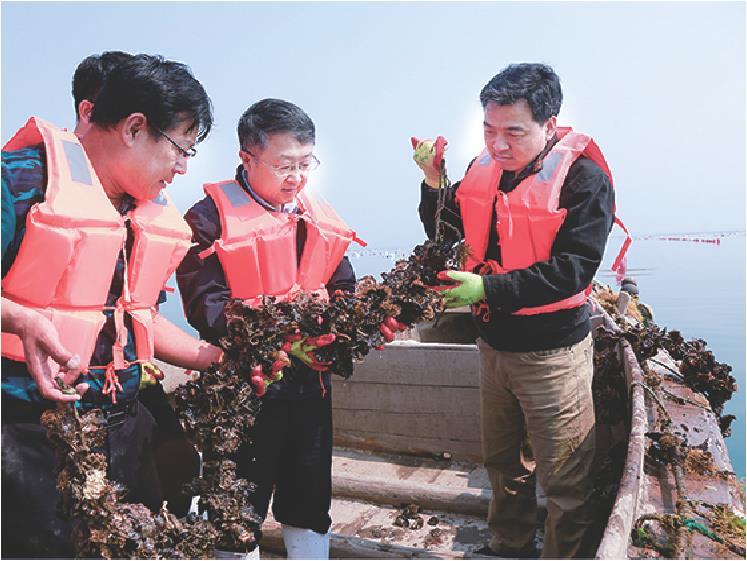 “蓝色种业”创新团队查看长牡蛎“海大3号”养殖情况