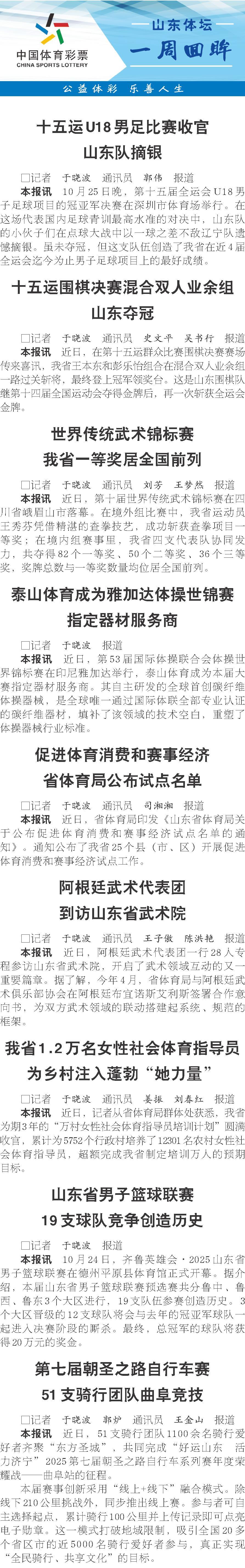 山东体坛一周回眸