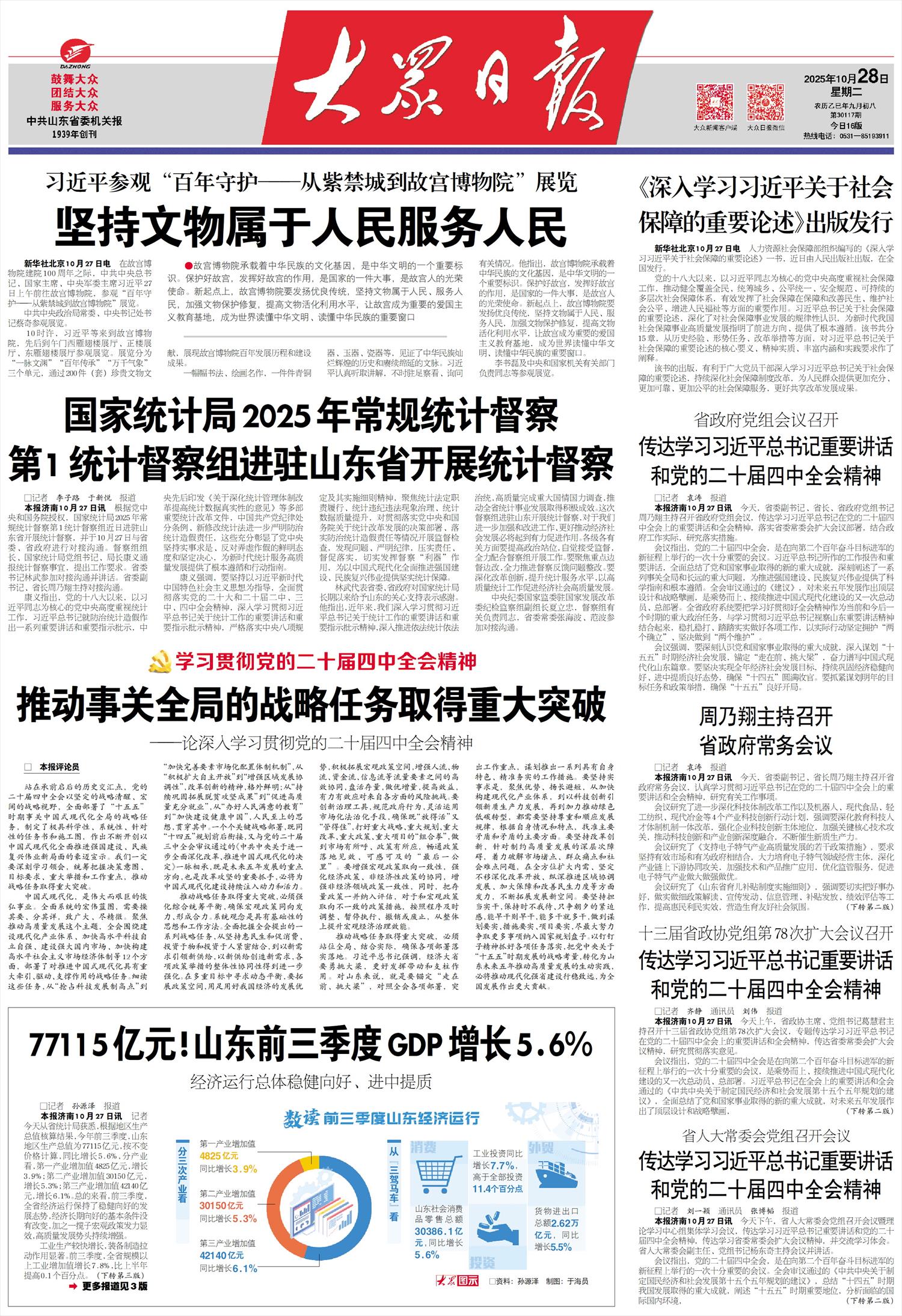 国家统计局2025年常规统计督察第1统计督察组进驻山东省开展统计督察