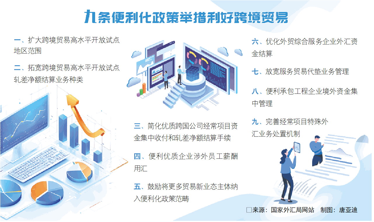 国家外汇局持续构建“越诚信越便利”的外汇政策体系,并在2022年推出了跨境贸易高水平开放试点,推动经常项目外汇业务“减单证、简流程”,目前试点已扩大至11地。