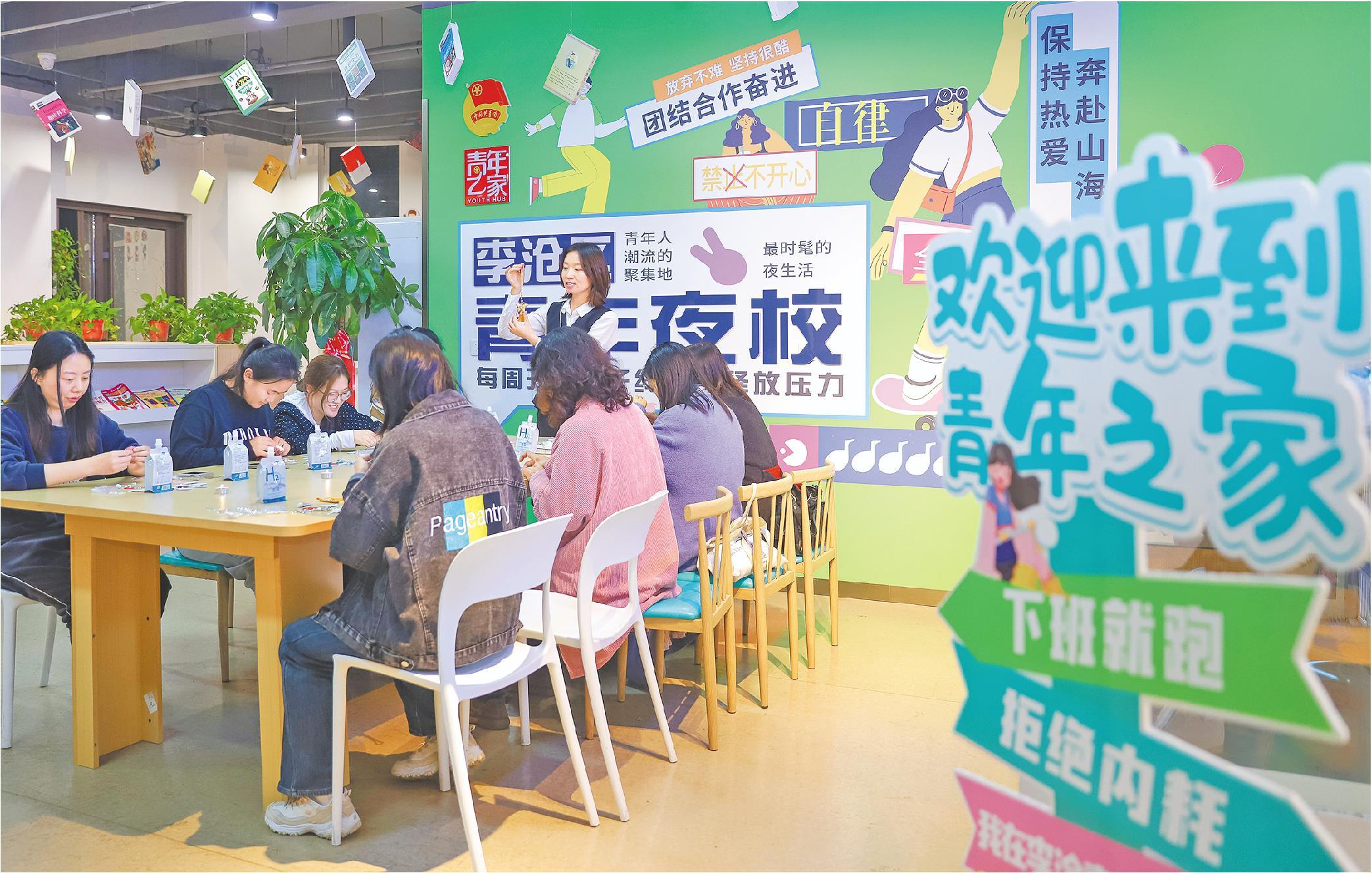 近年来,围绕青年成长发展实际需求,李沧区“青年之家·青年夜校”积极整合多方资源,构建形成青年学习交友、技能提升的“15分钟学习发展圈”。目前已开设书法、太极、非遗手工等55门课程,聚合12支青年兴趣小组,让更多年轻人在业余时间实现自我提升。