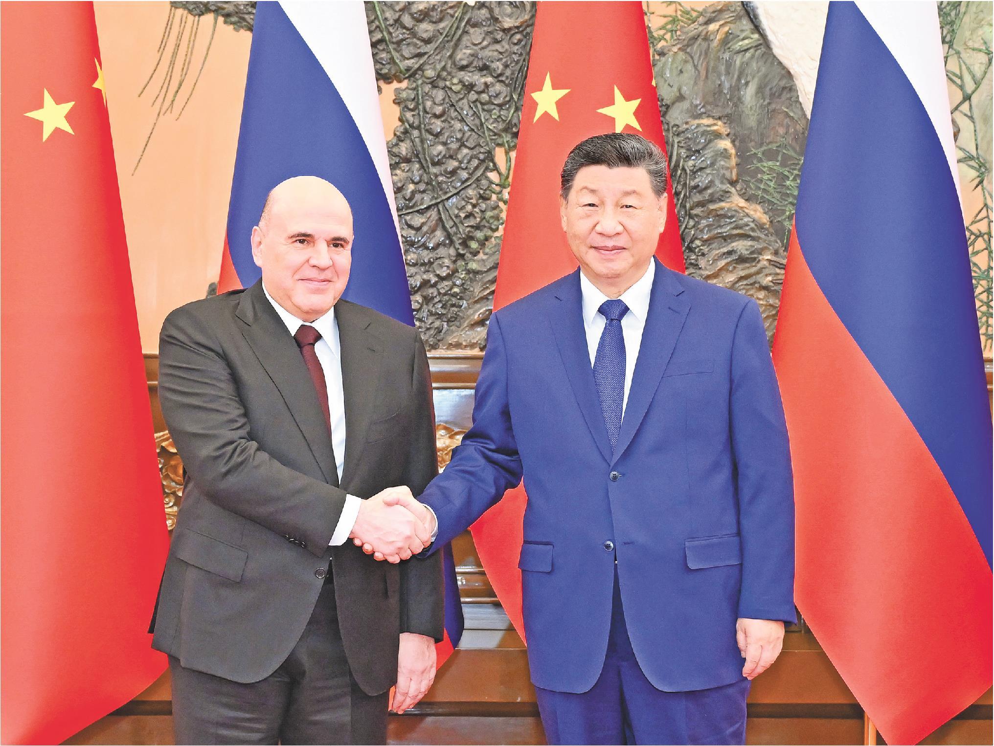 11月4日上午,国家主席习近平在北京人民大会堂会见俄罗斯总理米舒斯京。