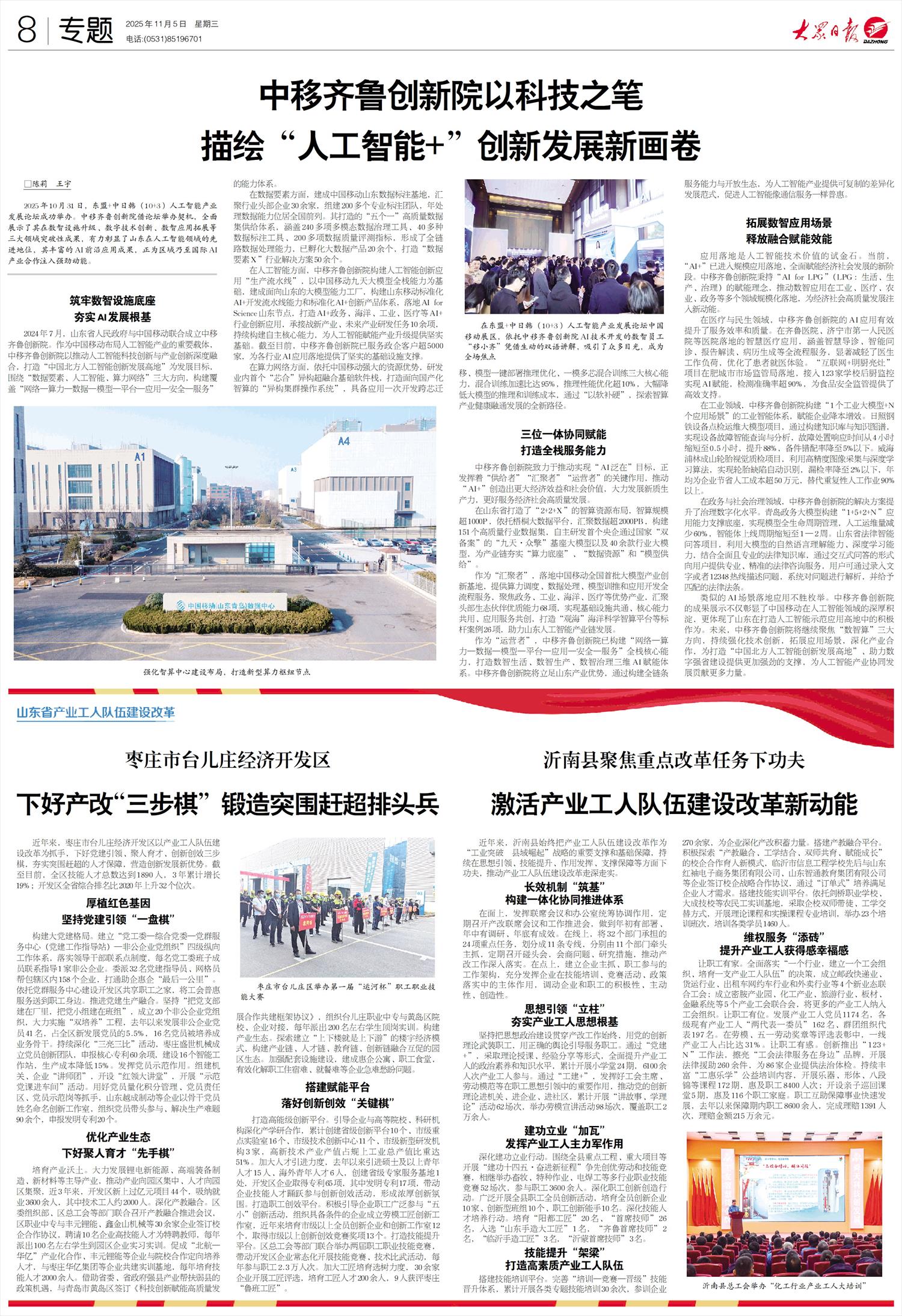 中移齐鲁创新院以科技之笔描绘“人工智能+”创新发展新画卷