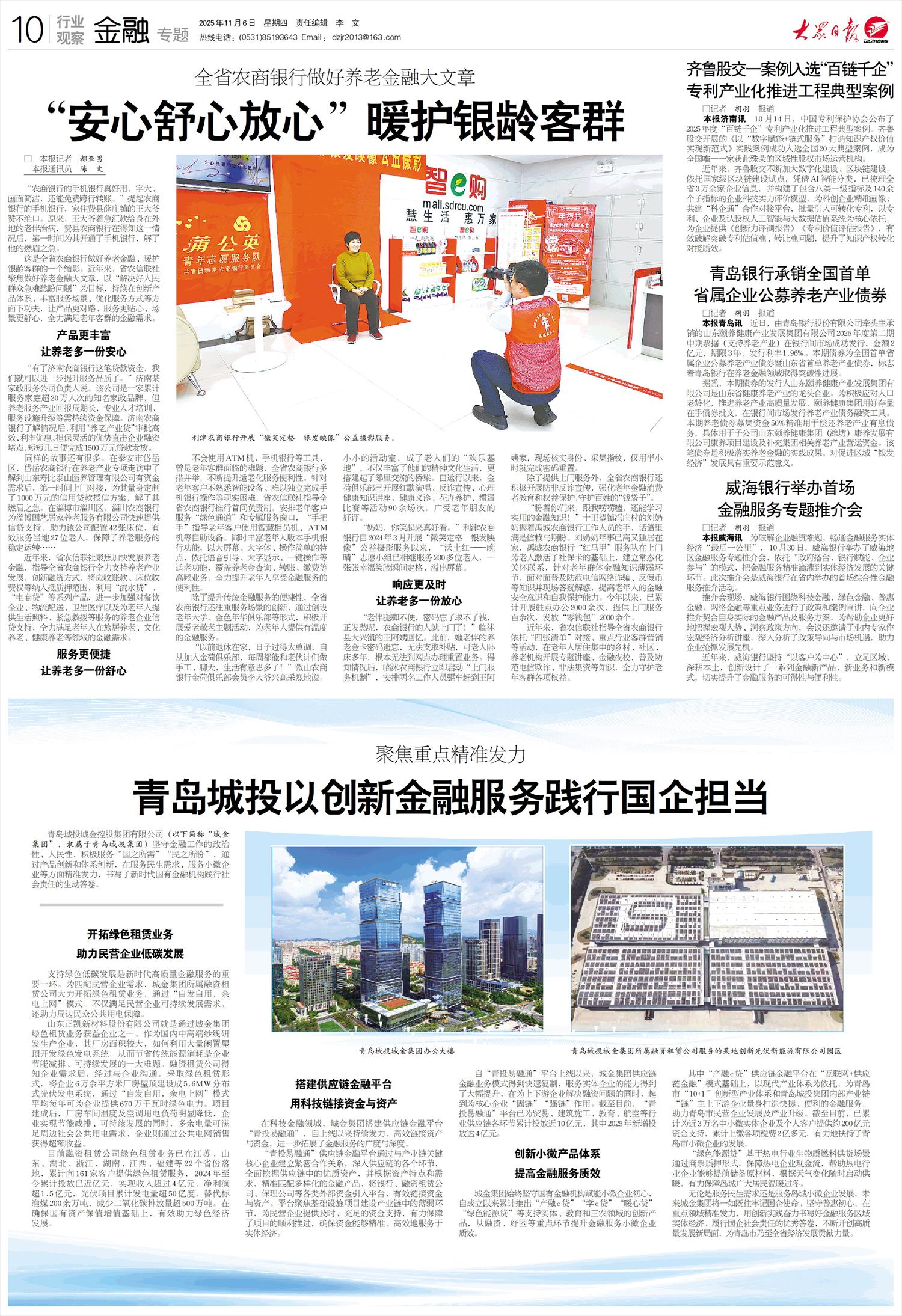 青岛城投以创新金融服务践行国企担当