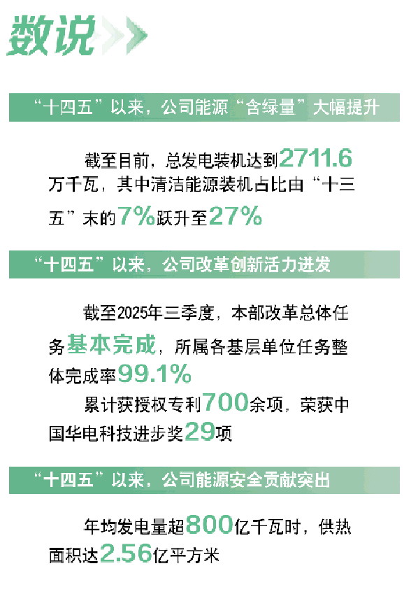 ——稳固安全根基。扎实推进设备可靠性管理,提升技术监督水平,严防机组“非停”和降出力,2025年23台机组获评中电联火电能效对标优胜机组。有序推进机组灵活性改造,“十四五”期间,累计改造完成31台1635.5万千瓦,增加深调能力322.5万千瓦,其中莱城电厂2号、4号机组深调能力达到20%,火电兜底保障作用显著增强。