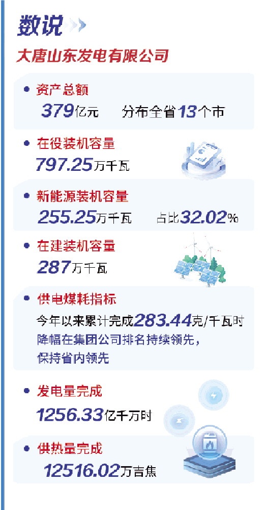 “三组攻略”步步推进,成效显著,“大唐新山东”轮廓越发清晰。在2024年经营效益同比再翻一番的基础上,今年前三个季度利润指标持续突破历史最高纪录并位居大唐集团前列,新能源核准备案指标跃居集团前列、机组能效对标获奖占比位居集团前列、成功发行大唐集团首单类REITS项目且创2025年度央企同类项目利率最低;特色工作8次登上中央电视台,全国文明单位实现“零的突破”,政治生态日益清朗,“大唐新山东”品牌日益响亮。