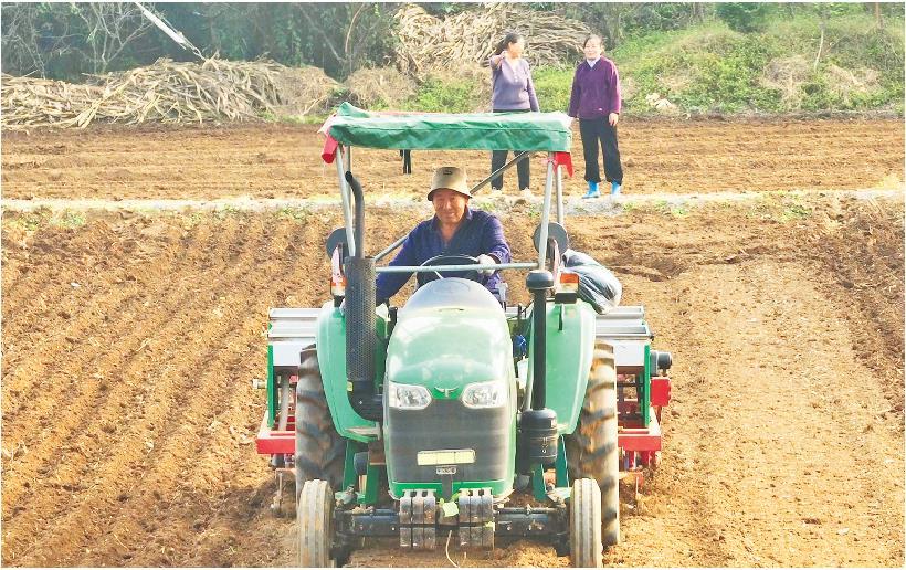 眼下,山东冬小麦播种工作正有序展开。枣庄市市中区农技专家下沉一线,开展田间精准指导,通过技术下乡与农机赋能,帮助农户科学抢播。图为播种机穿梭于田间。