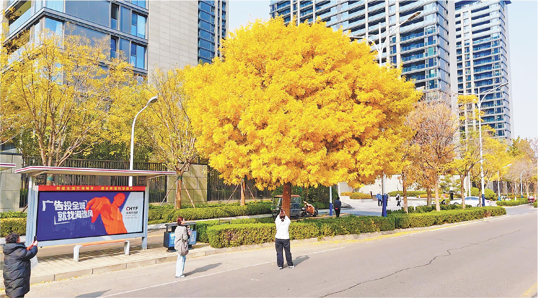 深秋时节,德州市德城区解放中大道上的一棵白蜡树化身“顶流网红”,引得过往市民驻足拍照,定格这份秋日浪漫。