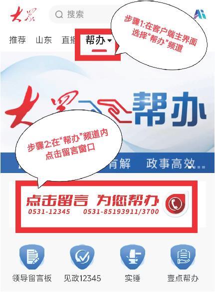 方式二:登录大众新闻客户端,在“帮办”频道进行留言反馈(上图);