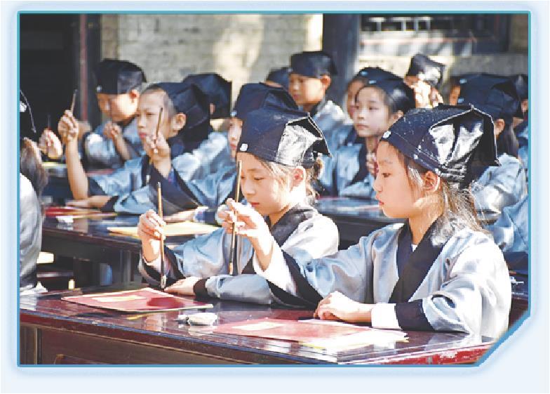 研学游的孩子们在孟府体验“开笔礼”