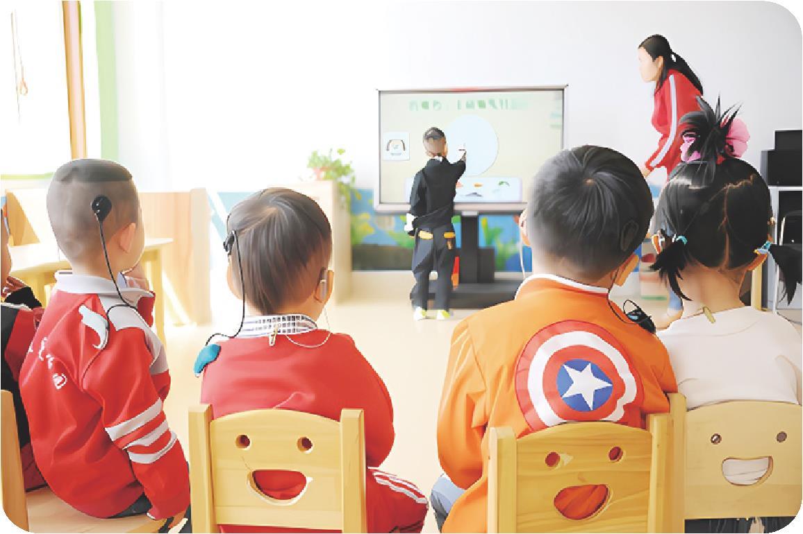 听障儿童接受人工耳蜗植入手术后,进行康复训练