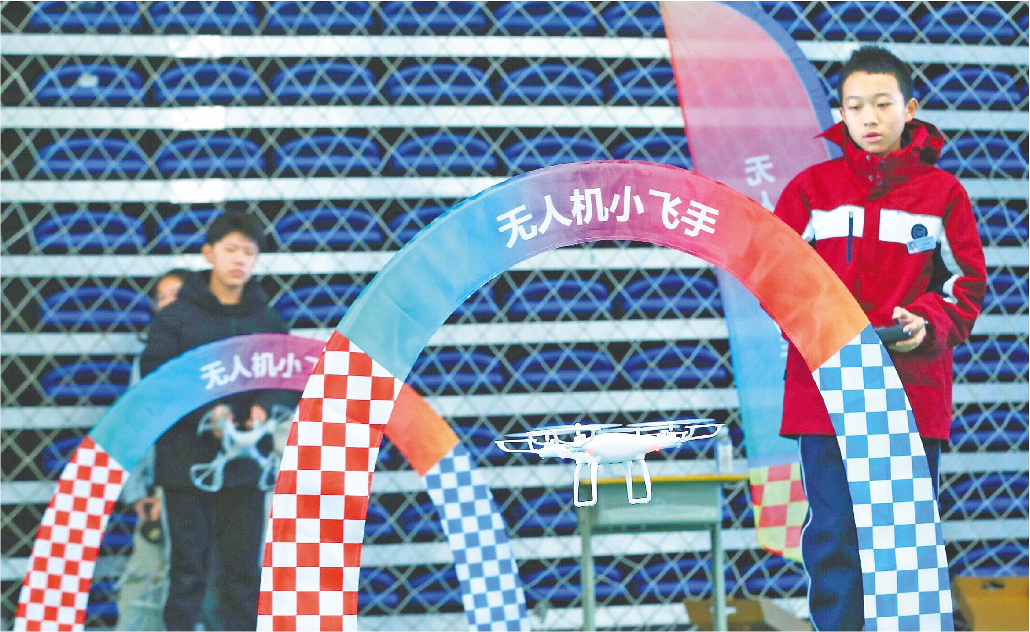 12月21日,青岛市即墨区的学生参加“无人机小飞手”项目比赛。