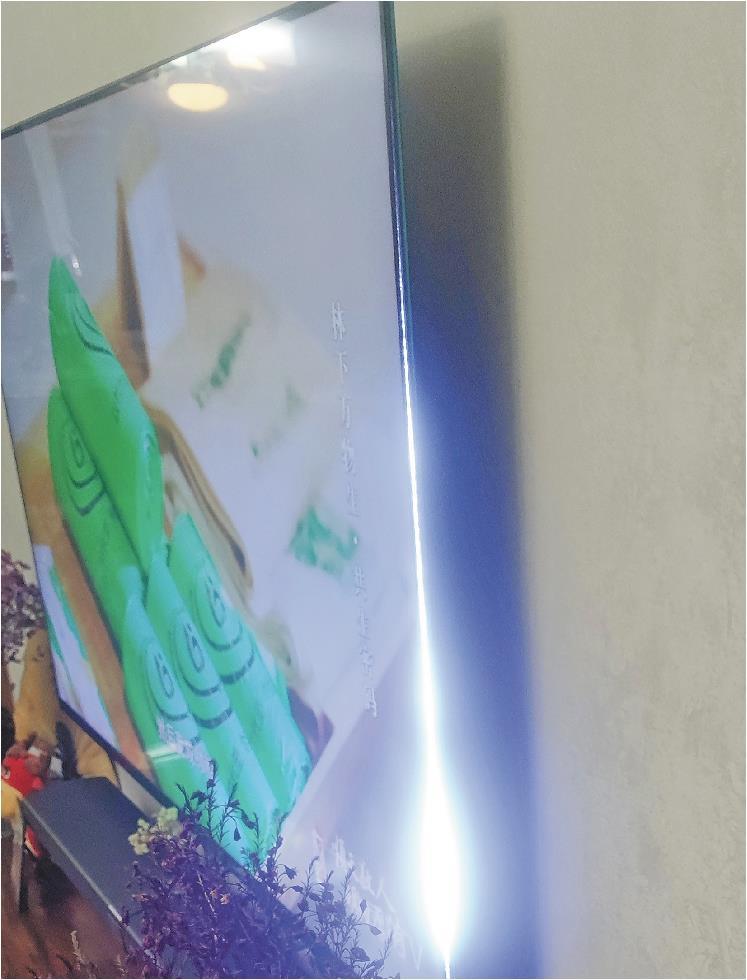 12月16日,记者来到韩先生家中,看到挂在客厅墙上的平板电视两侧竟然用两只夹子夹了起来。“不夹着的话,开胶再严重点儿,屏幕就掉下来了。”韩先生告诉记者,他在2018年花6000多元购买了小米65寸平板电视,保修期为3年。一周之前,他猛然看到挂在客厅墙上的电视屏幕两侧有漏光的现象,仔细一看才发现,是屏幕开胶了。