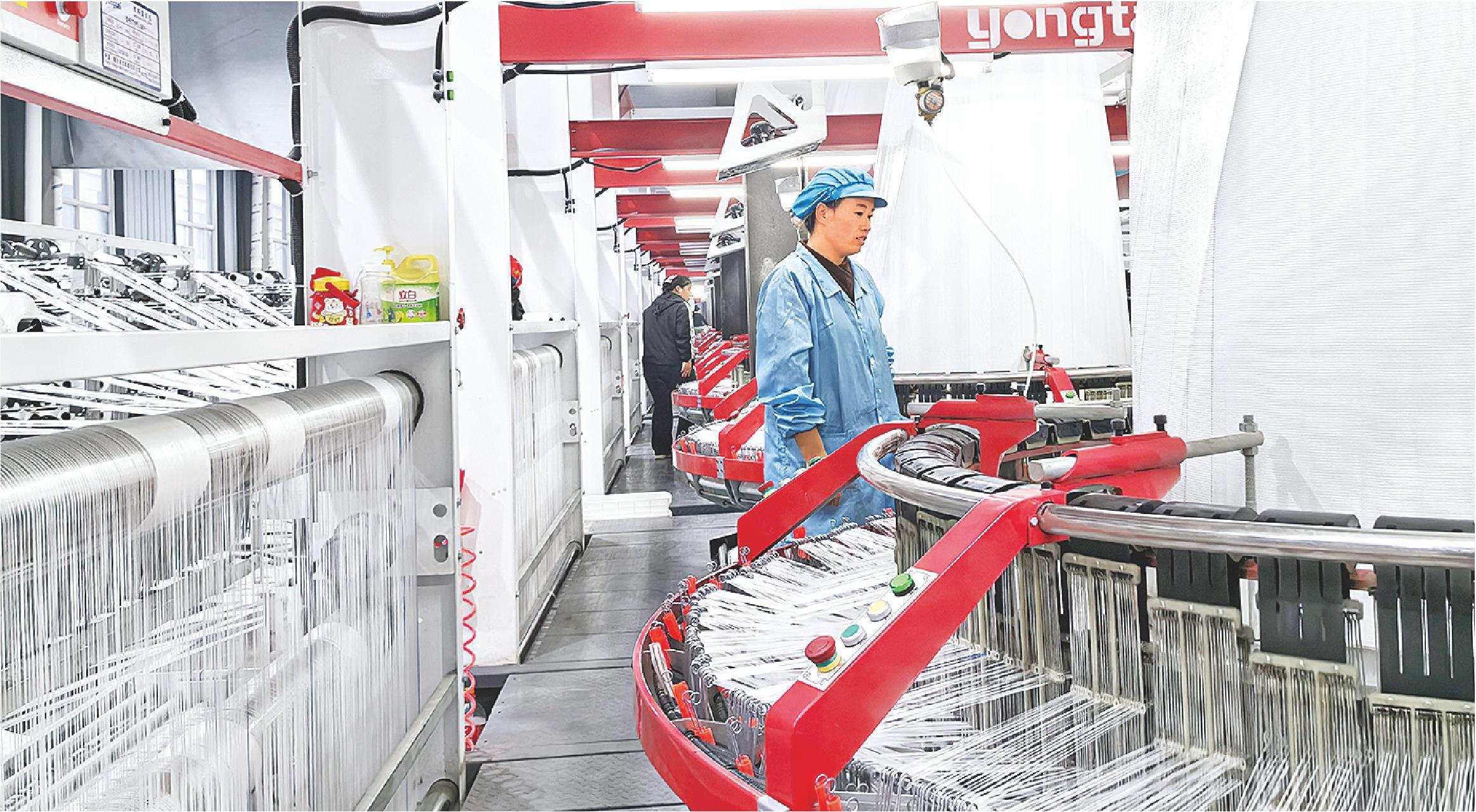 12月21日,在东明县刘楼乡村振兴共富产业园生产车间内,工人正在烯烃新材料生产线上工作。东明县瞄准烯烃新材料产业赛道,推动化工产业向下游延伸,形成了从原油加工到化工新材料、再到高端新材料的全产业链布局。目前,全县82家新材料企业每年可就地转化聚丙烯、聚乙烯等原料10万余吨,产品覆盖食品包装、管道管材、电子配件等10余个领域。